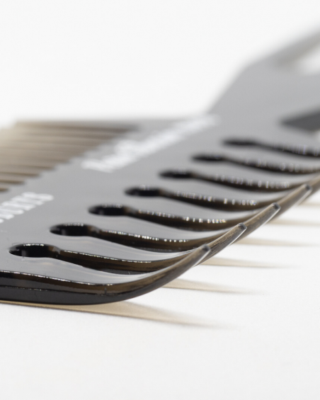 El Peine Tiburón es la herramienta definitiva, tres peines en uno, cada uno de ellos con separaciones diferentes entre las púas. Perfecto para crear texturas de diferentes tamaños, una herramienta versátil y práctica para cualquier cuidado del cabello.