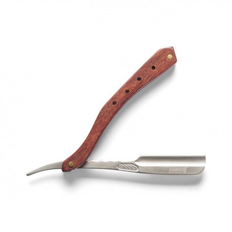 Navaja de barbero profesional idónea para realizar el afeitado clásico. Compatible con las cuchillas Feather®. Elaborada artesanalmente con una aleación de metales premium y un mango de madera.