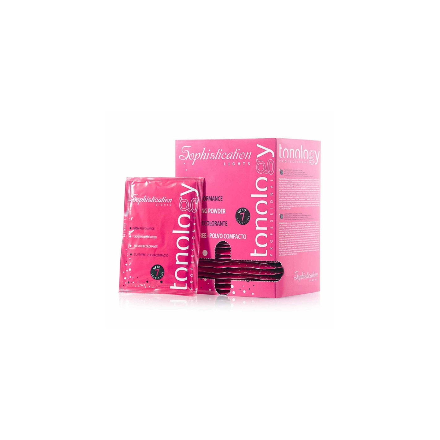 La nueva fórmula de Tonology Sophistication Lights consigue decolorar el pelo hasta 7 tonos. Consigue una máxima aclaración del cabello respetando profundamente la fibra capilar. Contiene proteínas de origen vegetal que otorgan un poder acondicionador en el cabello. Su fórmula Dust-free impide que se levante polvo durante la mezcla. Permite trabajar cualquier técnica decoloración. Suave perfume a manzanas verdes.