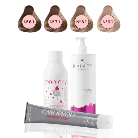 Consigue un color frío y sofisticado con el Pack Color Reflejos Fríos de Carobels. Este set incluye los tintes más demandados en los salones: Rubio Oscuro Ceniza (6.1), Rubio Medio Ceniza (7.1), Rubio Claro Ceniza (8.1) y Rubio Extra Claro Ceniza (9.1), ideales para eliminar reflejos amarillos y naranjas no deseados. Además, el pack incorpora un oxidante de 20 volúmenes para potenciar la cobertura y un champú matizador Wild Berry Cosmogrey, que ayuda a mantener el tono frío y prolongar la duración del color. ¡Elige calidad profesional para un resultado impecable!