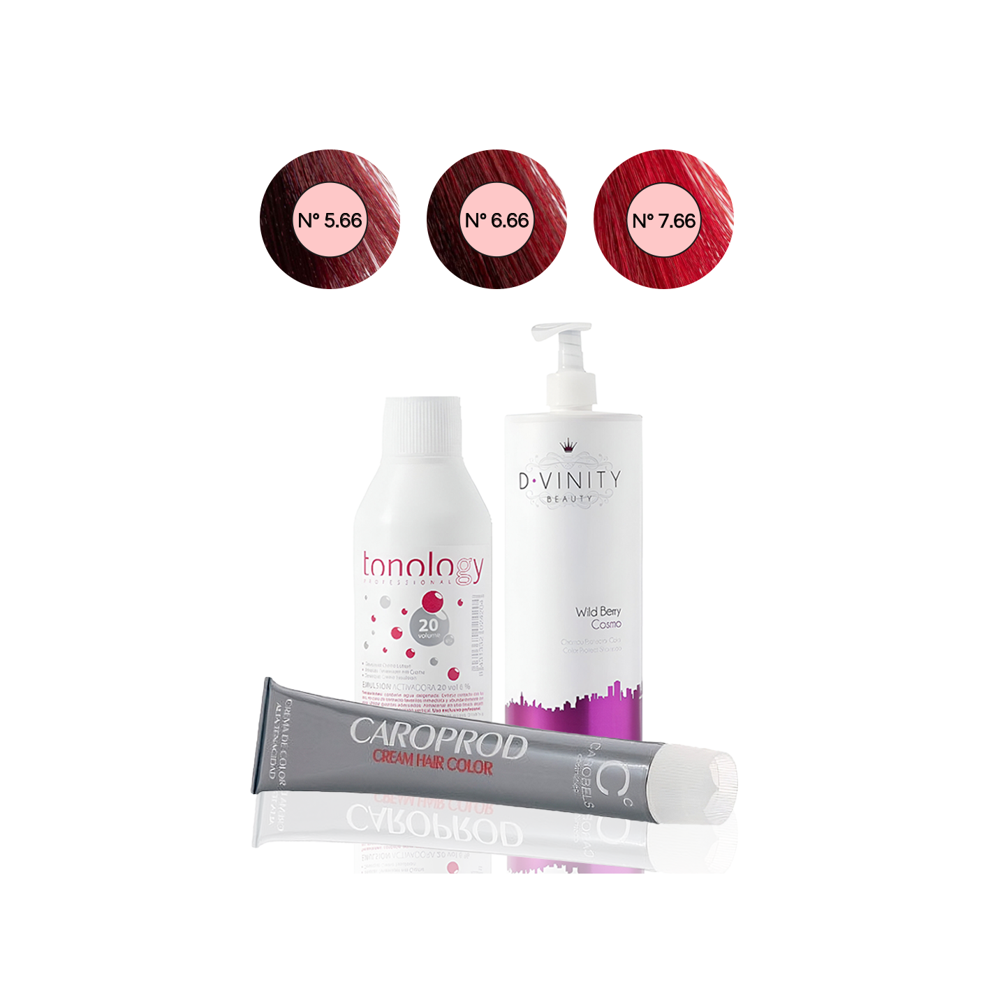 El Pack Rojos de Tonology es la elección perfecta para quienes desean un color atrevido, potente y con personalidad. Incluye tres tintes de alta calidad en los tonos Pecado (6.66), Púrpura (5.66) y Escándalo (7.66), diseñados para ofrecer una cobertura total y un acabado intenso y brillante. La emulsión activadora de 30 volúmenes (80 ml) potencia la fijación del color y garantiza un resultado duradero y profesional. Además, el champú Wild Berry CosmoGrey (250 ml) ayuda a prolongar la intensidad de los tonos rojos, dejando el cabello suave, protegido y visiblemente más luminoso.
