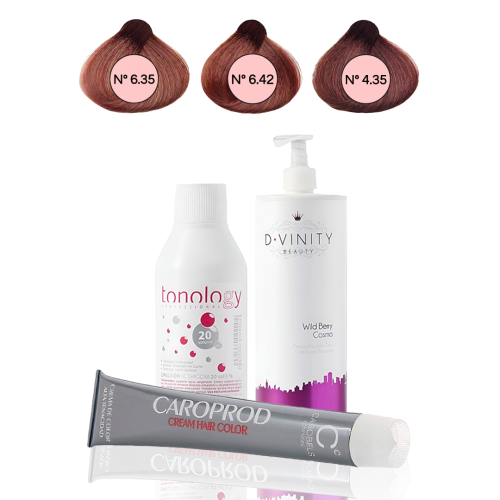El Pack Caobas de Tonology es la elección ideal para quienes buscan tonos intensos, sofisticados y con reflejos cálidos. Incluye tres tintes de alta calidad en los tonos Glacé (6.35), Brandy (6.42) y Caoba Iridiscente (4.35), diseñados para proporcionar una cobertura uniforme y un acabado profundo y brillante. La emulsión activadora de 30 volúmenes (80 ml) potencia la fijación del color y garantiza un resultado profesional. Además, el champú Wild Berry CosmoGrey (250 ml) ayuda a prolongar la intensidad del color, dejando el cabello suave, nutrido y protegido.