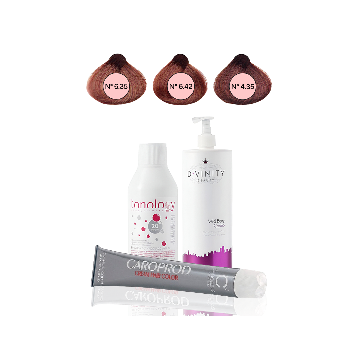 Sumérgete en la riqueza del Pack Caobas de Tonology, una combinación sofisticada de tonos profundos e intensos con reflejos dorados y cobrizos. Incluye dos tintes profesionales en tonos Glacé y Brandy, una emulsión activadora de 30 volúmenes para un resultado duradero, y el champú Wild Berry CosmoGrey que cuida el color y nutre en profundidad.