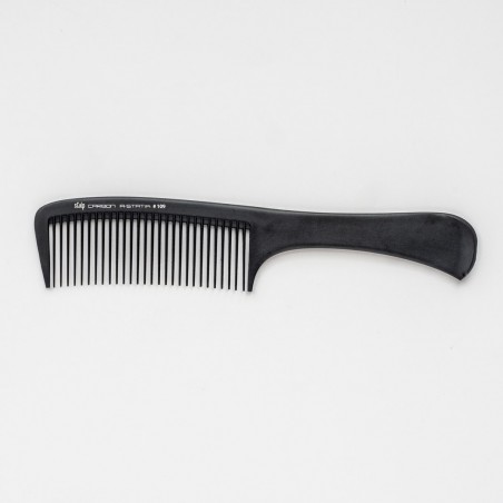 Peine de carbono ultrarresistente que evita la electricidad estática en el cabello. El peine de carbono A-Statik de Sculp ha sido diseñado con púas redondeadas para evitar la ruptura del cabello. Es resistente al calor y a productos químicos como tintes, permanentes, decoloraciones...