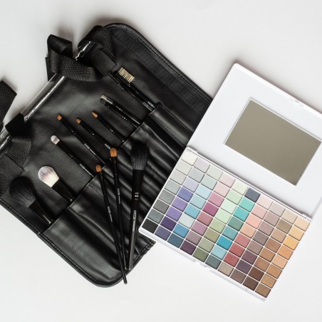 Siéntete como una maquilladora profesional y consigue resultados increíbles con esta kit de 13 pinceles profesionales de maquillaje con su práctica manta y, de regalo, una paleta de sombras de ojos con 80 tonos diferentes.