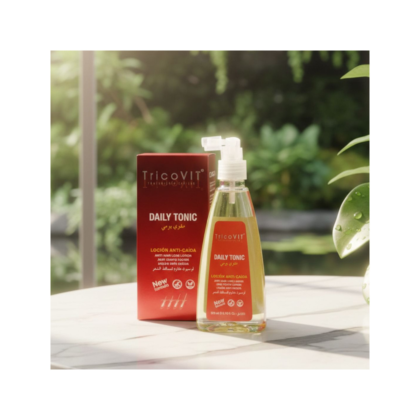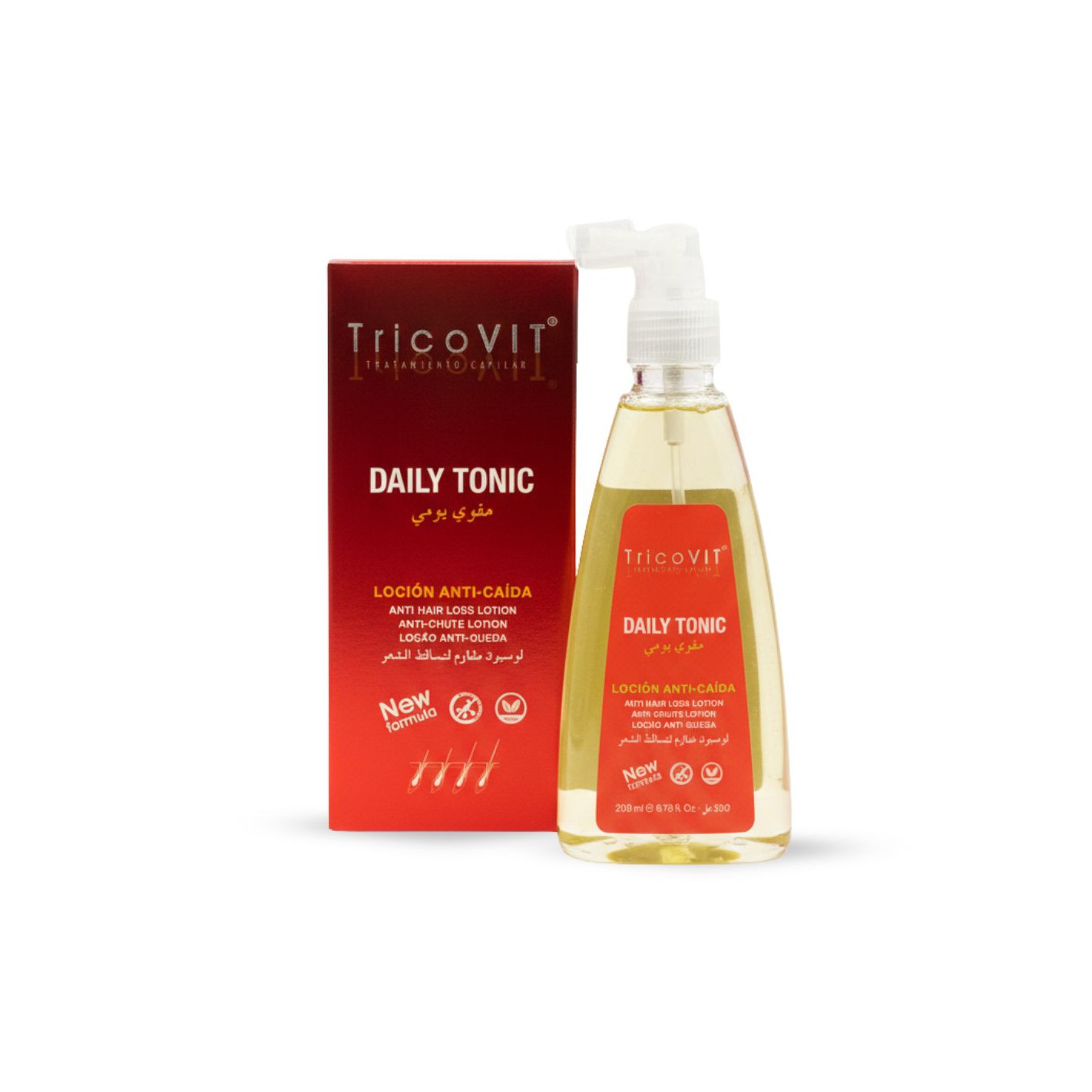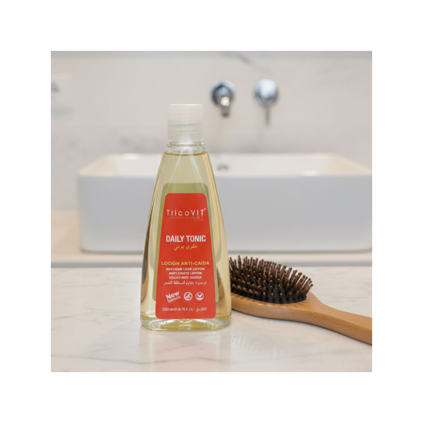 - Frenar la caída del cabello: La aplicación diaria de la loción anticaída de TricoVIT retrasa la caída del cabello y fortalece la fibra capilar, mejorando su salud, para que se alargue el ciclo natural de caída del cabello.